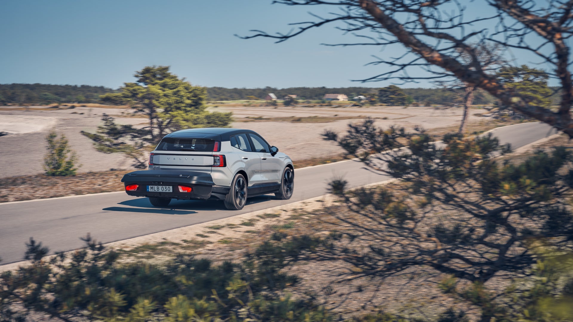The Volvo EX30 has a range of up to 480 km. Range figures are preliminary and based on WLTP testing standards obtained under specific testing conditions for the EX30. These outcomes are not guaranteed. Real-world range varies depending on driving behaviour and other external factors. Vehicle certification pending.